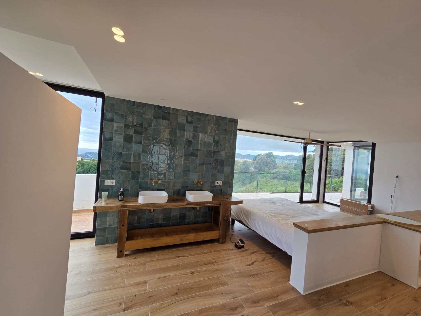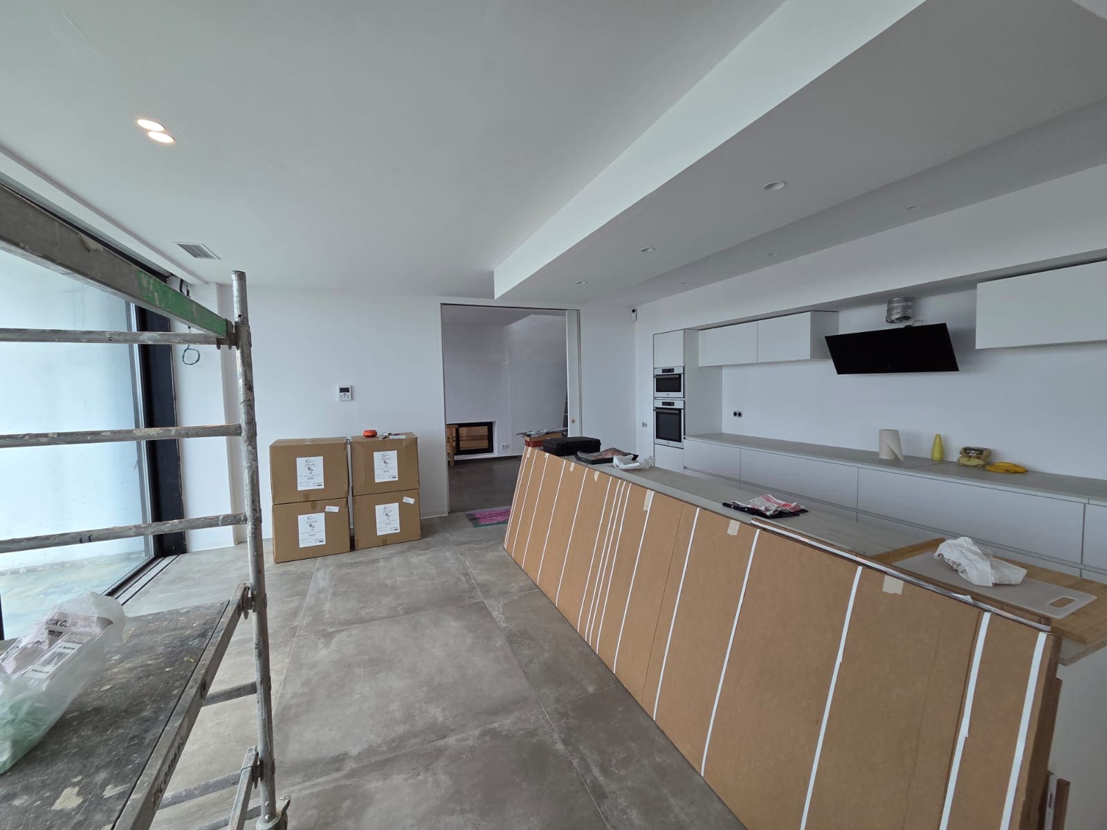 Reforma integral de la cuina, renovació de banys, instal·lació de noves lluminàries i canvi de tot el paviment del xalet.